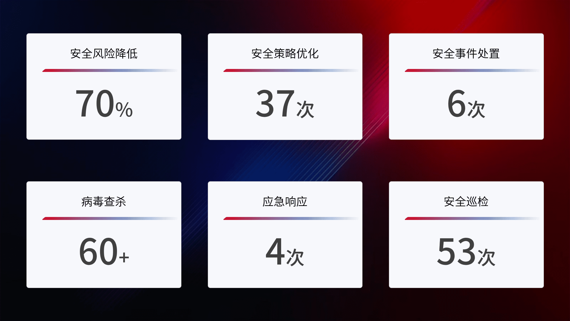 综合报告与文档服务: 定期提供安全事件处置报告、、、周/季度总结报告和年度总结报告;详尽的文档服务可帮助客户了解网络安全状况,,,支持决策制定和流程优化。。
